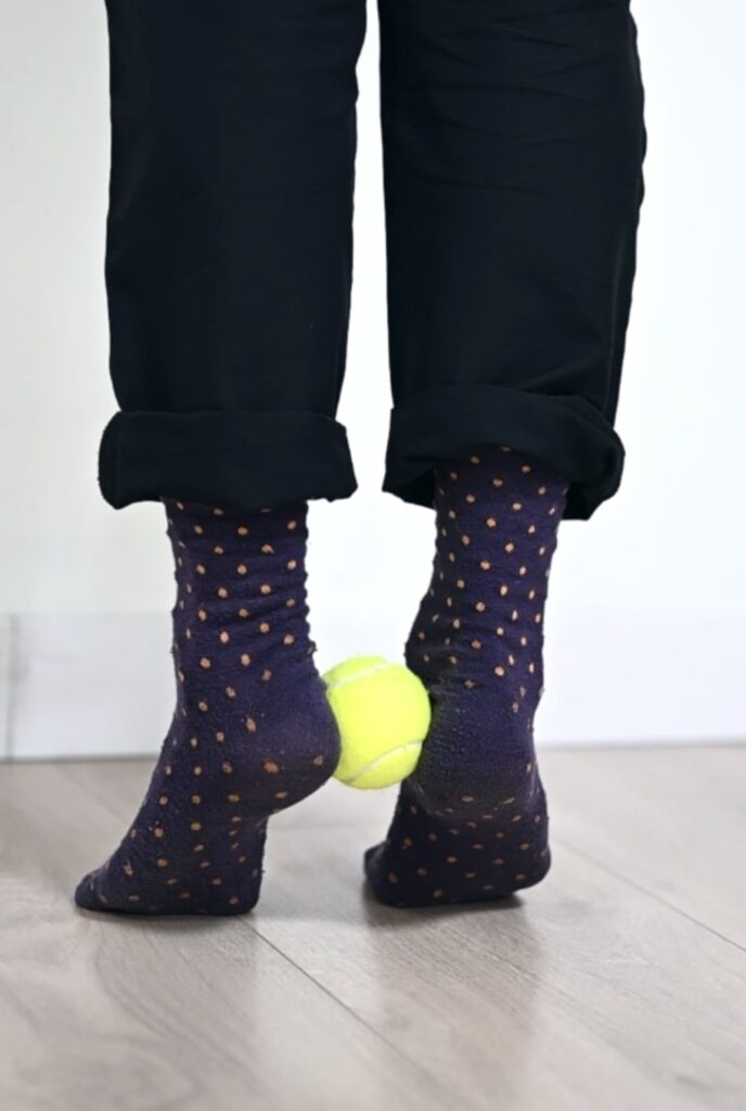 - Coloca una pelota de tenis entre tus tobillos.